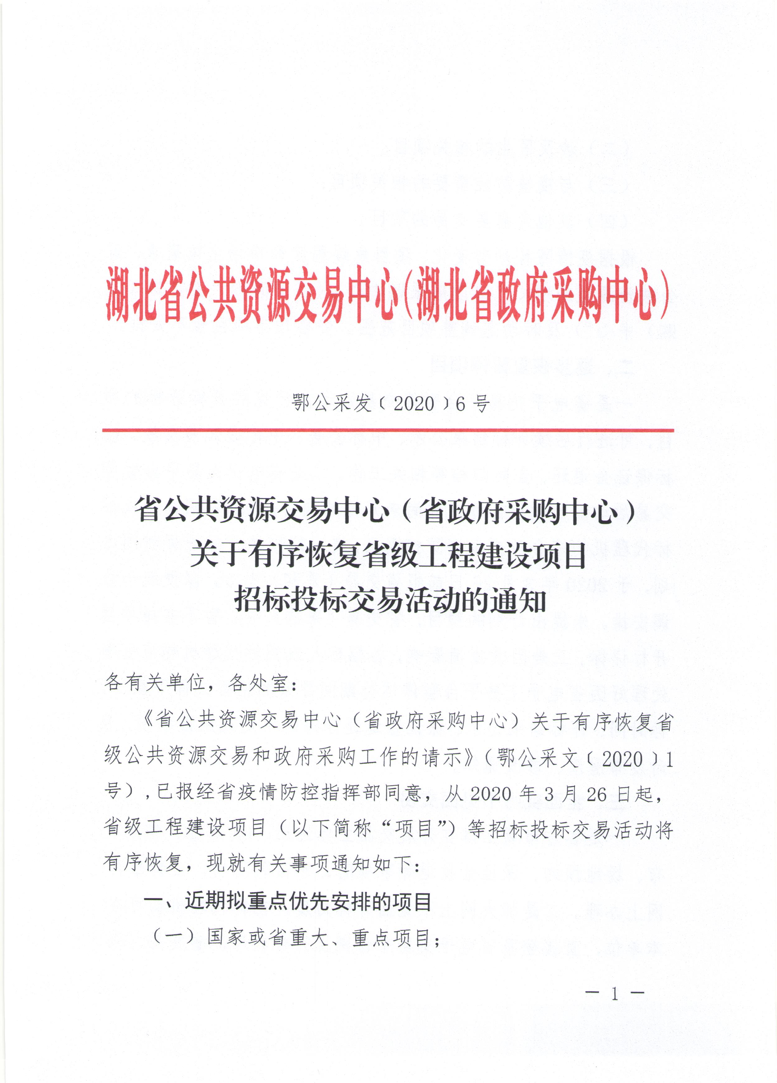 湖北省公共资源交易中心(湖北省政府采购中心)关于有序恢复省级工程建设项目招标投标交易活动的通知