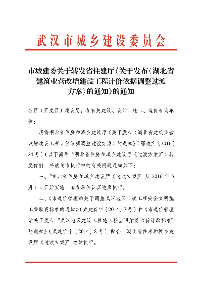 《湖北省建筑业营改增建设工程计价依据调整过渡方案》的通知